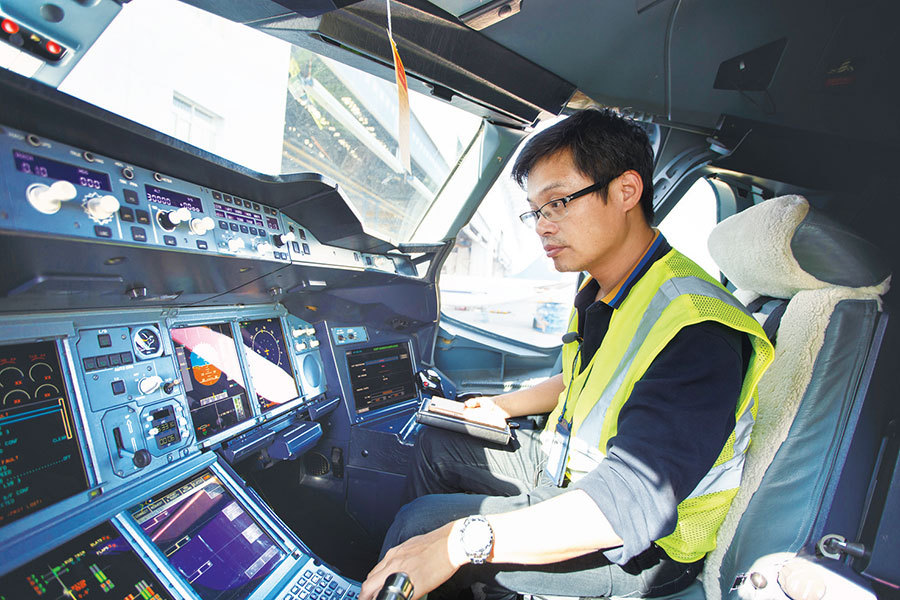 飞机对一般人来讲是交通工具,而对他们而言,已是生活和事业的一部分。刘宇辉早就与飞机结下深厚的感情,小的时候数飞机轮子,再大点时数飞机窗户,天天数、天天看,后来只要望着轰鸣远去消失在云端的飞机,就能辨别出型号。